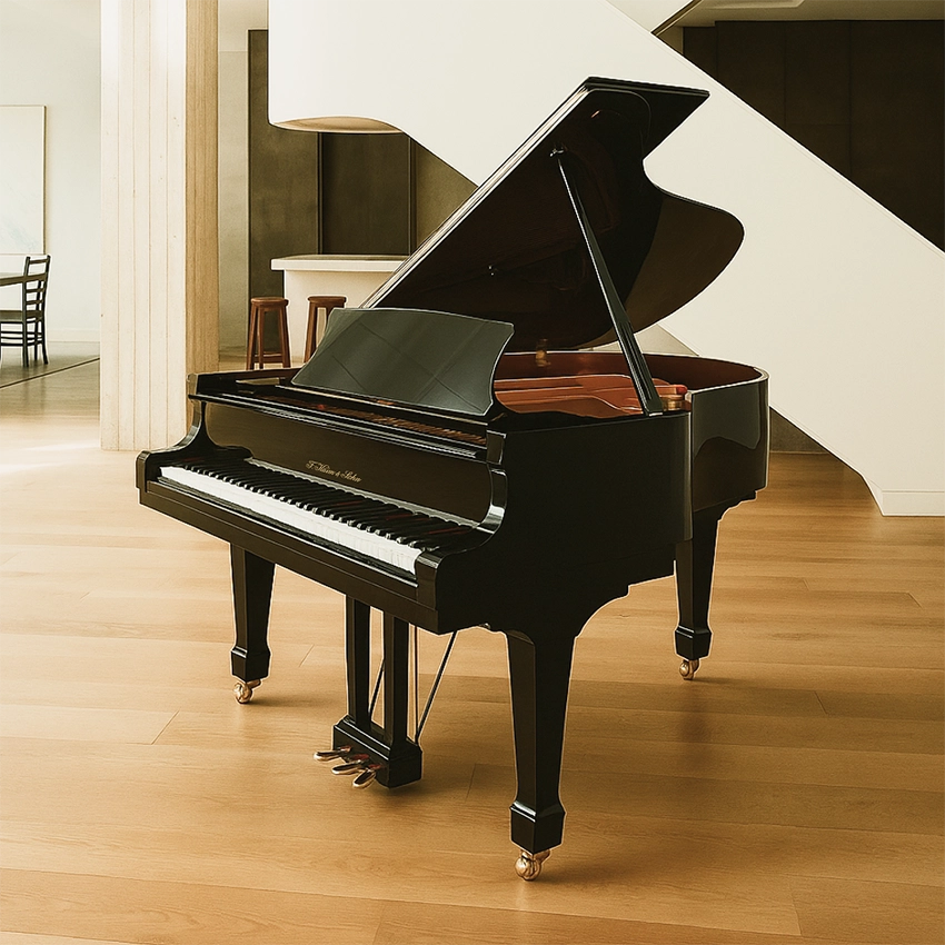 Il pianoforte a coda F. KAIM & SOHN HG-186 da 186 cm è il modello di punta della serie.