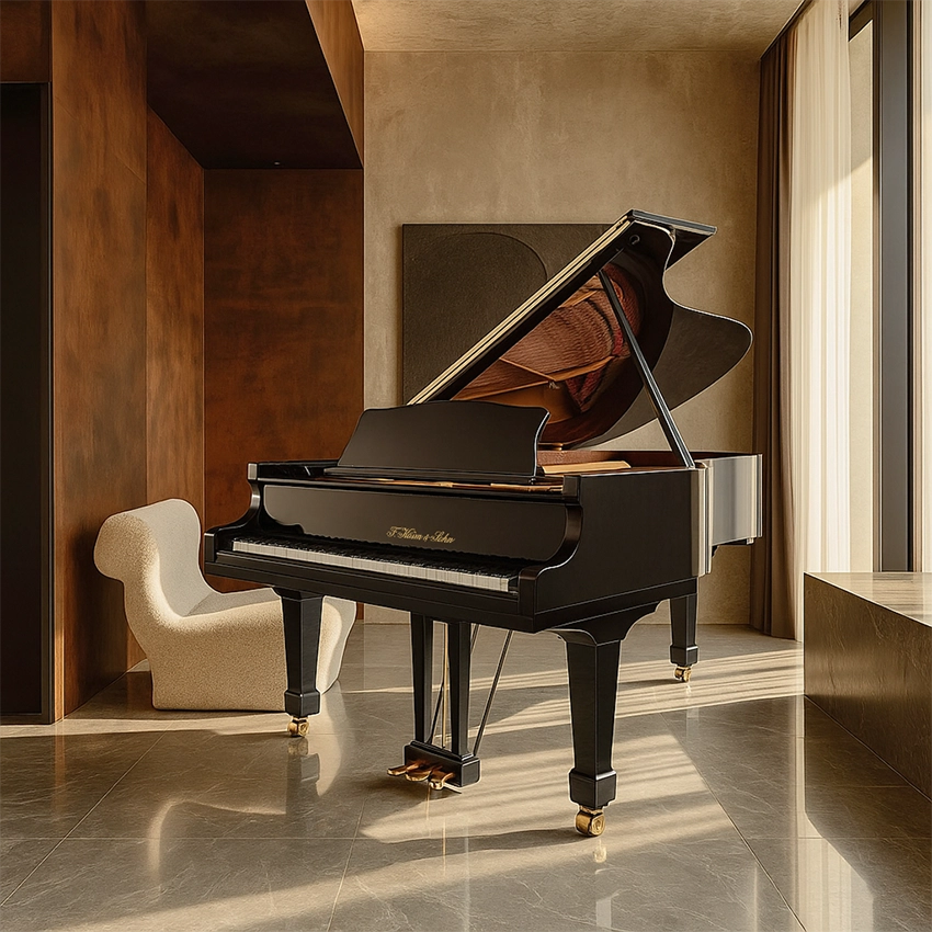 - F. Kaim & Sohn rechtopstaande piano's, ontworpen om een perfecte balans te bieden tussen compactheid en geluidskwaliteit.