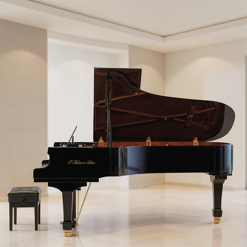 Chaque clavier de piano à queue F. KAIM & SOHN est constitué d’un épicéa à grain droit sélectionné avec la plus grande rigueur. Ce bois, prisé pour ses propriétés acoustiques et sa stabilité, est séché naturellement pendant de longs mois, voire plusieurs années, afin de garantir une stabilité dimensionnelle parfaite.
